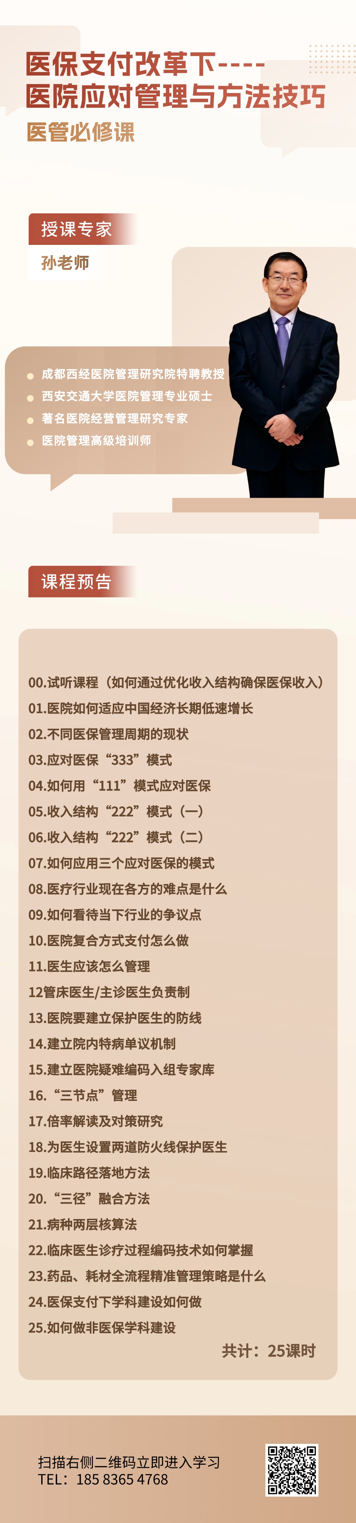 《医保支付改革下----医院应对管理与方法技巧》[51课时]