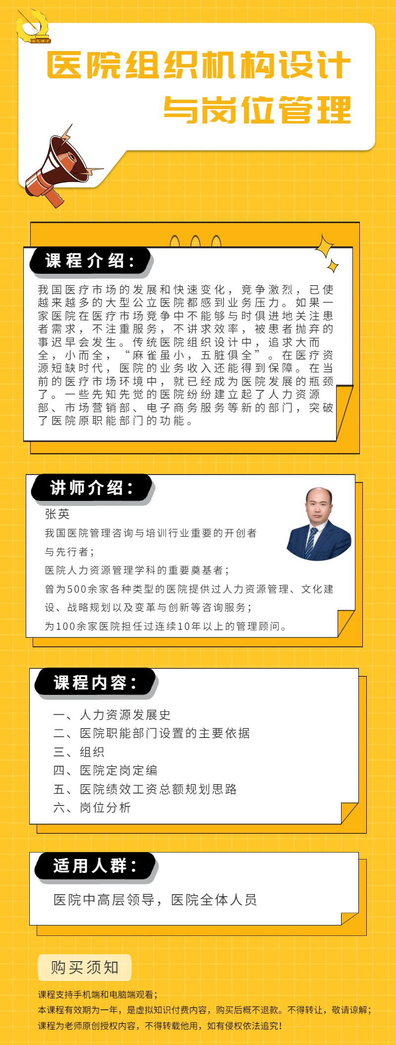 景惠管理研究院院长/研究员。知名医院管理咨询机构景惠集团创始人。是我国医院管理咨询与培训行业重要的开创者与先行者,医院人力资源管理学科的重要奠基者。曾先后在中央企业所属医院、中外合资医院、政府公立医院、民营医院担任过中高层管理职务。曾为500余家各种类型的医院提供过人力资源管理、文化建设、战略规划以及变革与创新等咨询服务。为100余家医院担任过连续10年以上的管理顾问。曾持续20余年担任清华大学、北京大学、中国人民大学、浙江大学、中山大学、华中科技大学等国内知名大学主办医院管理高级研修班核心课程的主讲老师、特聘教授或客座教授。经常为国家卫健委、国家中医药管理局、医学学术团体等举办的医院管理培训班或学术会议授课,累计授课时间1.5万多小时。出版的医院管理著作有《医院人力资源管理》《从理念到执行》《医院管理咨询10年案例选》《医生的影响力》《优秀员工的10项修炼》等10余部,出版的文学作品集有《从北向南》《抵达与返回》《纯粹生活》《生命履痕》等7部,主编著作30余部。主持完成医院管理课题80多项,发表医院管理学术论文150余篇。研究、咨询与培训的领域主要为医院人力资源管理、医院文化管理、医疗服务管理等。